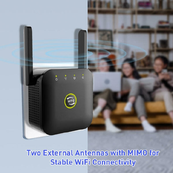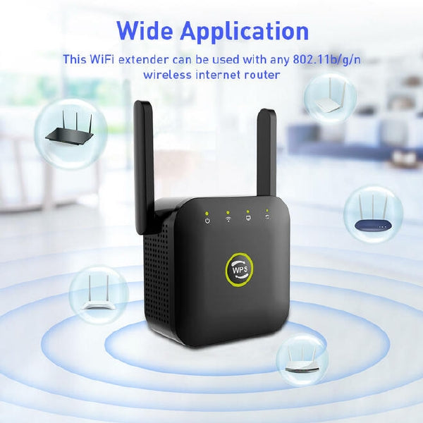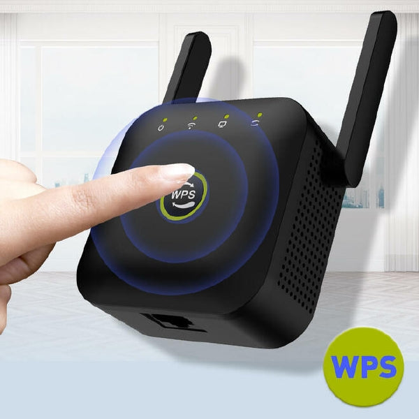 Product:  300Mbps Wi-Fi Repeater Signal Amplifier with Ethernet Port 2.4GHz for Home and Outdoor - One WPS Button Connection with Repeater and AP Mode - Black  Description:  Extend Wi-Fi Coverage