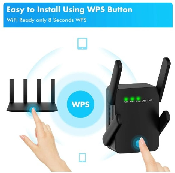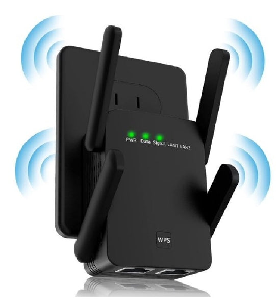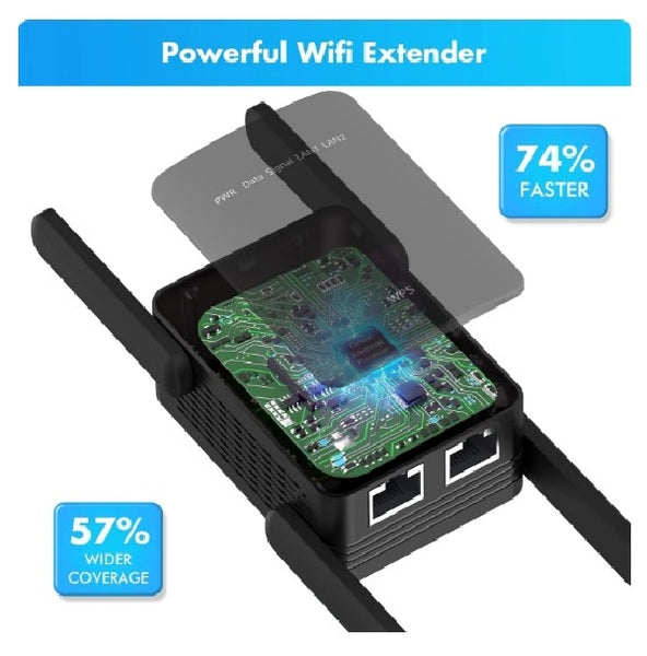 WiFi Extender Booster - 1200Mbps -WiFi Range Extender -Wireless Signal Booster with External 4 x 2dBi Dual-Band Antennas - WiFi Booster Dual Band 2.4GHz & 5.8GHz - Internet Booster Up to 3000sq. ft. - (Black)