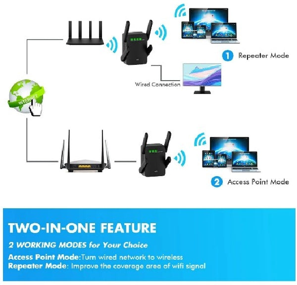 - Expanding WiFi Coverage: WiFi extenders amplify and extend your existing WiFi signal's coverage, allowing it to reach farther areas where the signal was previously weak or nonexistent, such as upper floors, corners, and gardens.