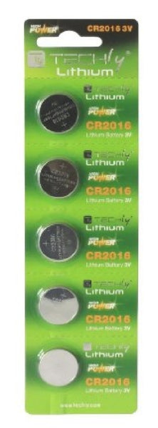 Techly 3V Lithium CR2016 Button Batteries - 5 Pack